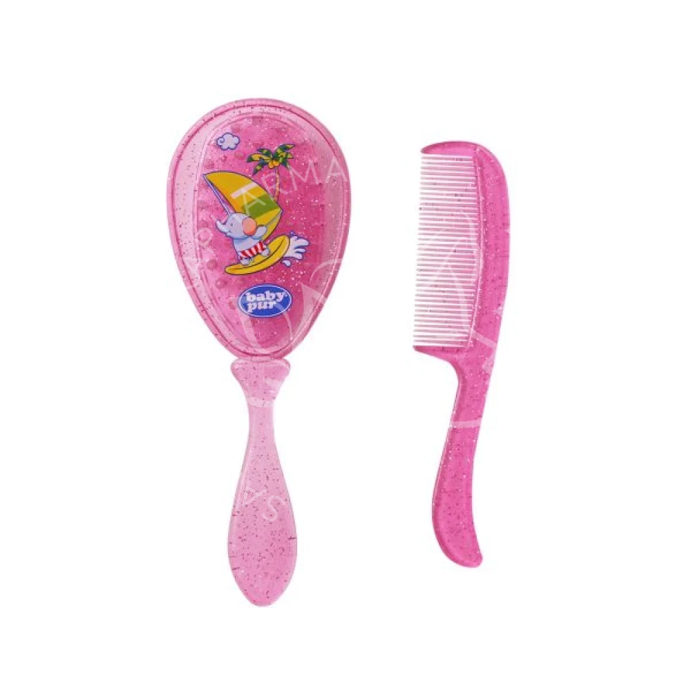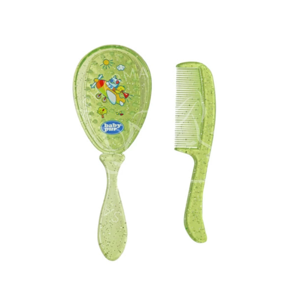 Brosse et peigne spécialement étudiés pour respecter le cuir chevelu sensible de bébé.
