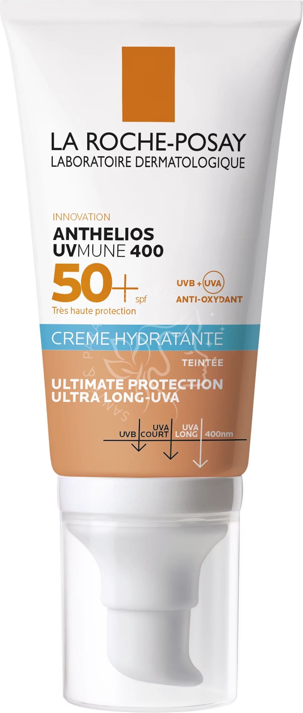 La Crème Solaire Hydratante Teintée avec parfum Très Haute Protection SPF50+ Anthelios de La Roche Posay contient un nouveau filtre UV Mexoryl 400 issu d'une innovation scientifique, qui renforce la protection contre les UV les plus insidieux, aussi appelés UVA ultra-longs. Parce qu'ils sont imperceptibles et dommageables, ces UV impactent la peau toute l'année.